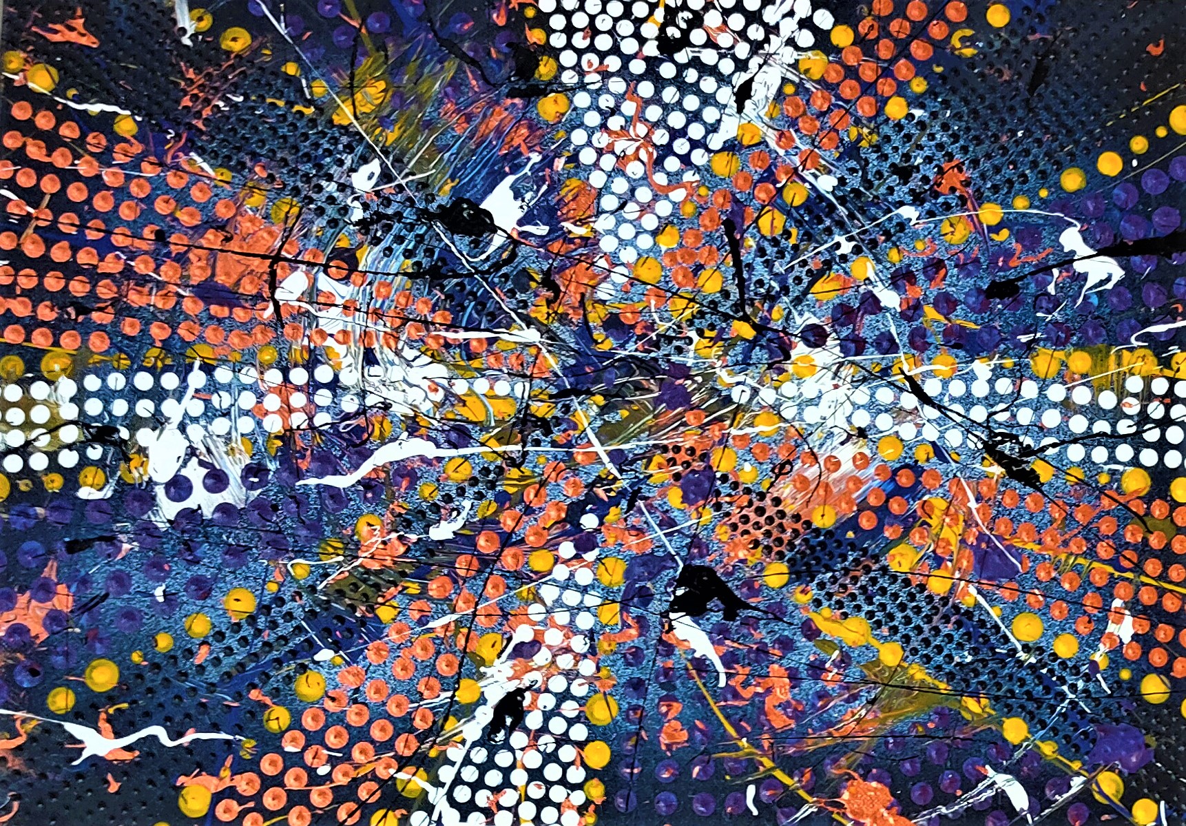 Peintures sur toile, supports métalliques et sculptures conceptuelles. Œuvres disponibles à la vente directe, payables en cryptomonnaies.
